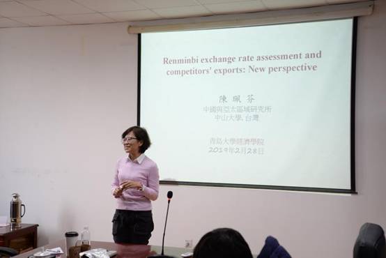 2月28日下午,应星空体育官方网站邀请,台湾中山大学中国与亚太区域研究所陈珮芬教授在金家岭校区西院3号实验楼307室作了新视角下人民币汇率评估和竞争者的出口系列讲座。星空体育官方网站部分教师、研究生参加了此次报告。本次讲座是星空体育官方网站系列学术报告“星空体育官方网站名家讲堂”2019年第3期(总第81期)。