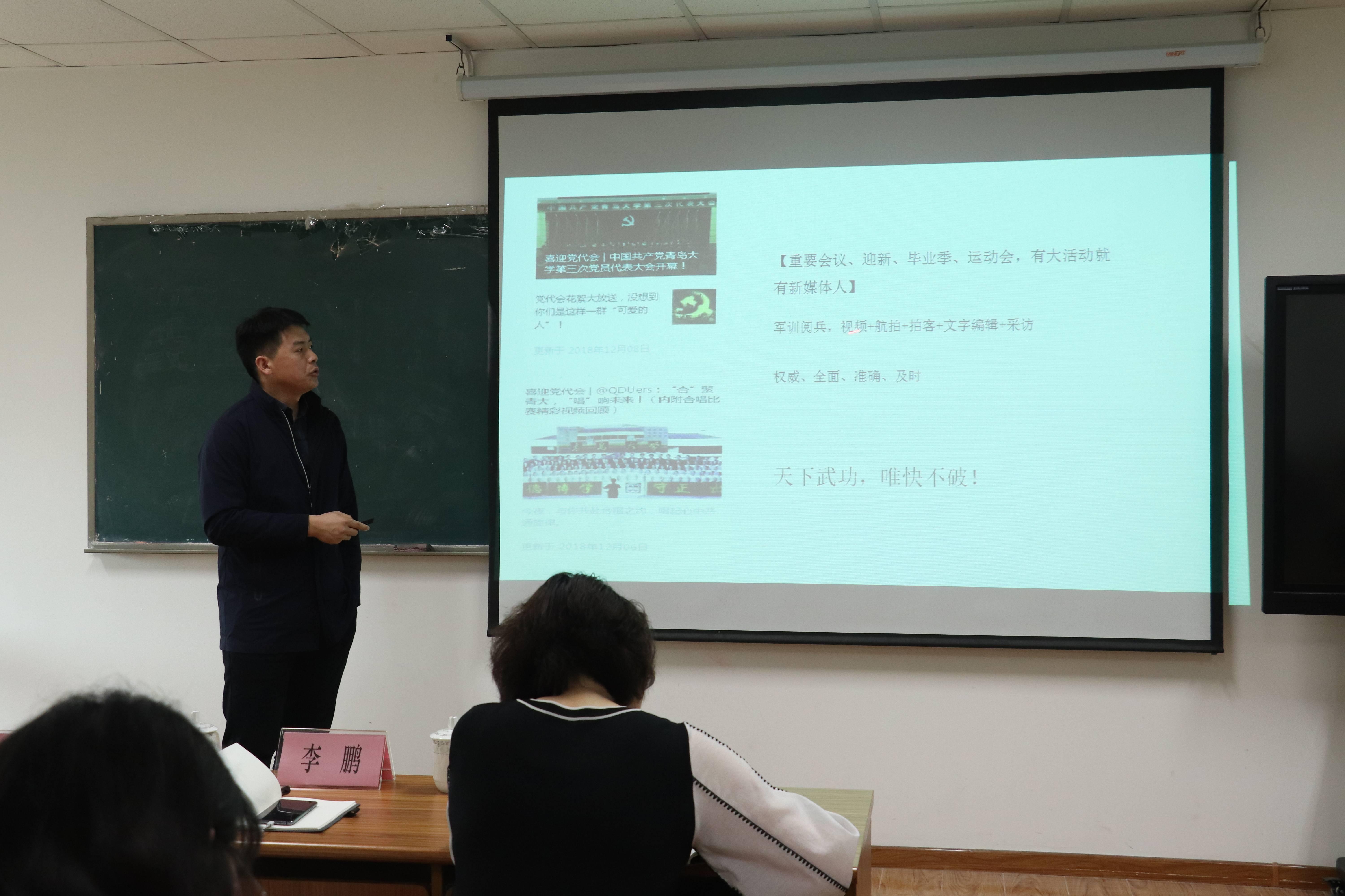 培训班上,李鹏为大家作了题为“青大新媒体运营那些事”的经验交流。他结合青大新媒体平台成功运营的实例,提出“新媒体运营四问”;通过分享众多优秀公众号的精准定位经验,强调了内容、调性的重要性;并对星空体育官方网站官微的运营现状提出建议。陈钰对后台编辑器、超链接、二条与素材管理等微信公众号功能进行介绍,从选题、构思、制作三个角度解读了一篇推送的制作过程。随后,主讲嘉宾与现场师生展开了热烈的互动。