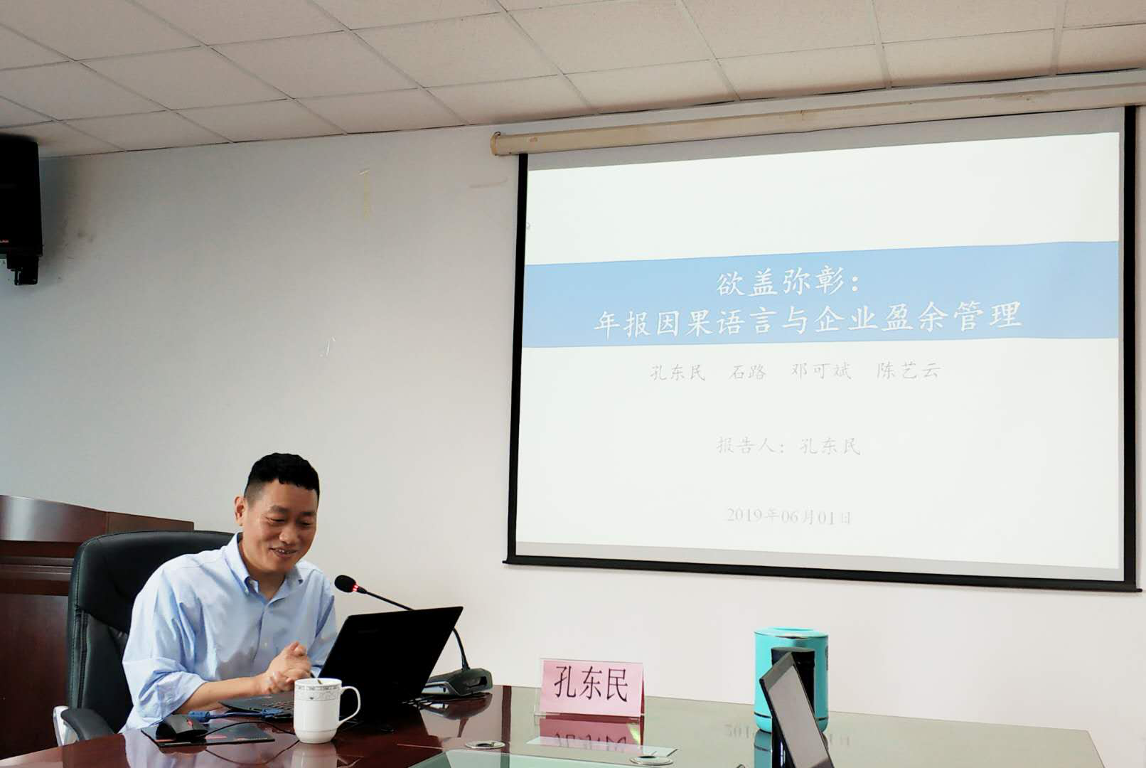 2019年6月10日上午,孔东民教授应邀到星空体育官网开展学术交流与指导,并做客星空体育官方网站2019第13期“经济学名家讲堂”,为师生做了《欲盖弥彰:年报因果语言与企业盈余管理》的精彩学术报告。