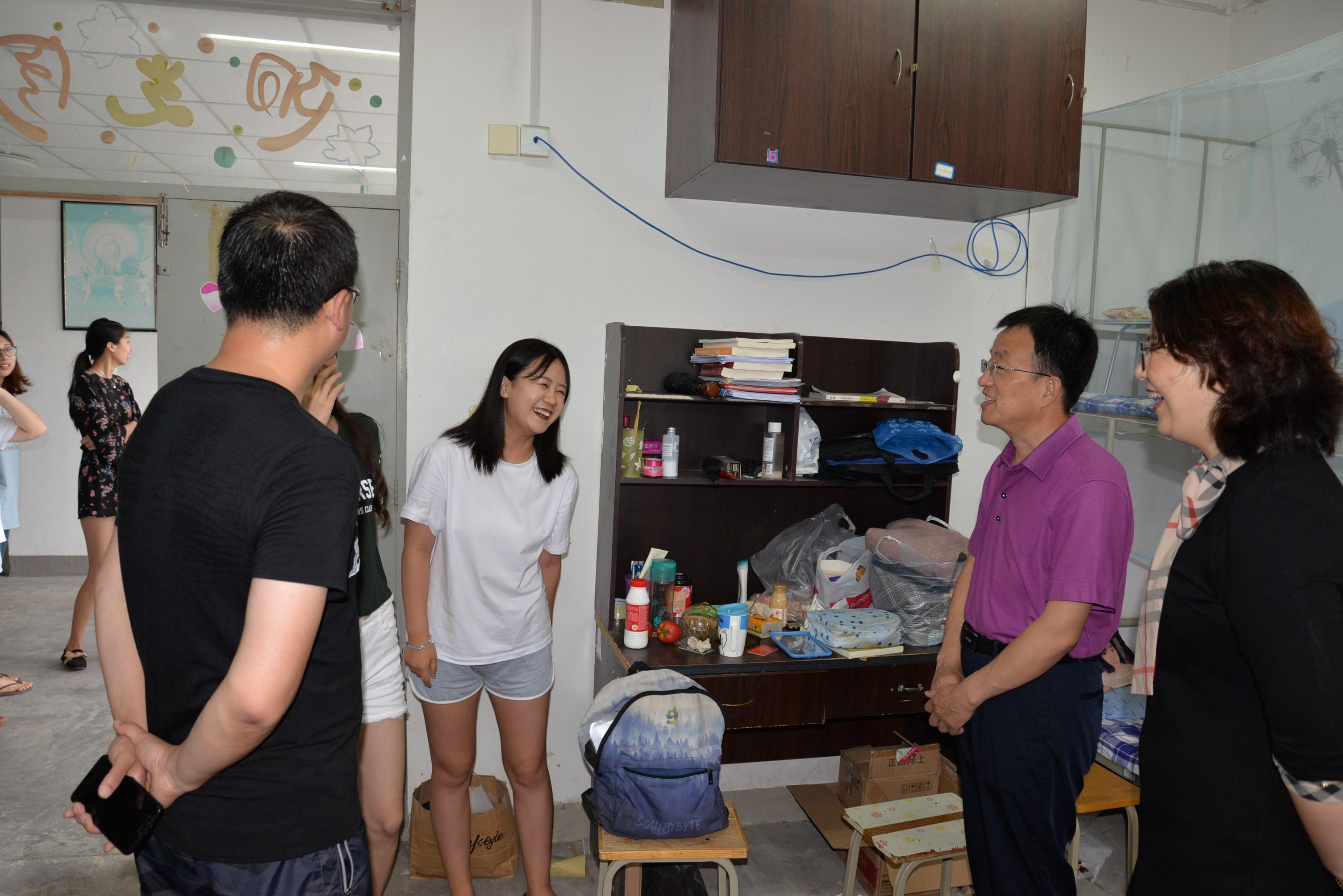 6月28日下午,芊芊细雨,瑟瑟清风,星空体育官方网站院长刘喜华、党委副书记王海荣和2015级辅导员李冉一同走访毕业生宿舍,与毕业生面对面接触,心贴心交流。老师们听取了他们对学院发展建设的意见和建议,询问他们对于未来的展望与规划,向他们表达了离别之际的不舍并给予了真挚的鼓励和祝福。走访临近结尾时,学生们坚持把老师们送到楼下,在门口与老师依依惜别,有些同学还为此流下了感动的眼泪。