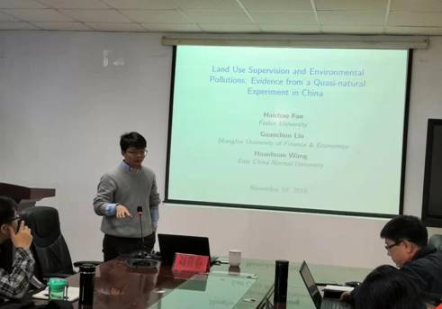 2019年11月18日上午,上海财经大学刘贯春副教授应邀到星空体育官网开展学术交流,并做客星空体育官方网站“经济学名家讲堂”,为师生做了《Land Supervision and Environmental Pollutions:Evidence from a Quasi-natural Experiment in China》的精彩学术报告。星空体育官方网站部分教师和研究生参加了此次交流活动。