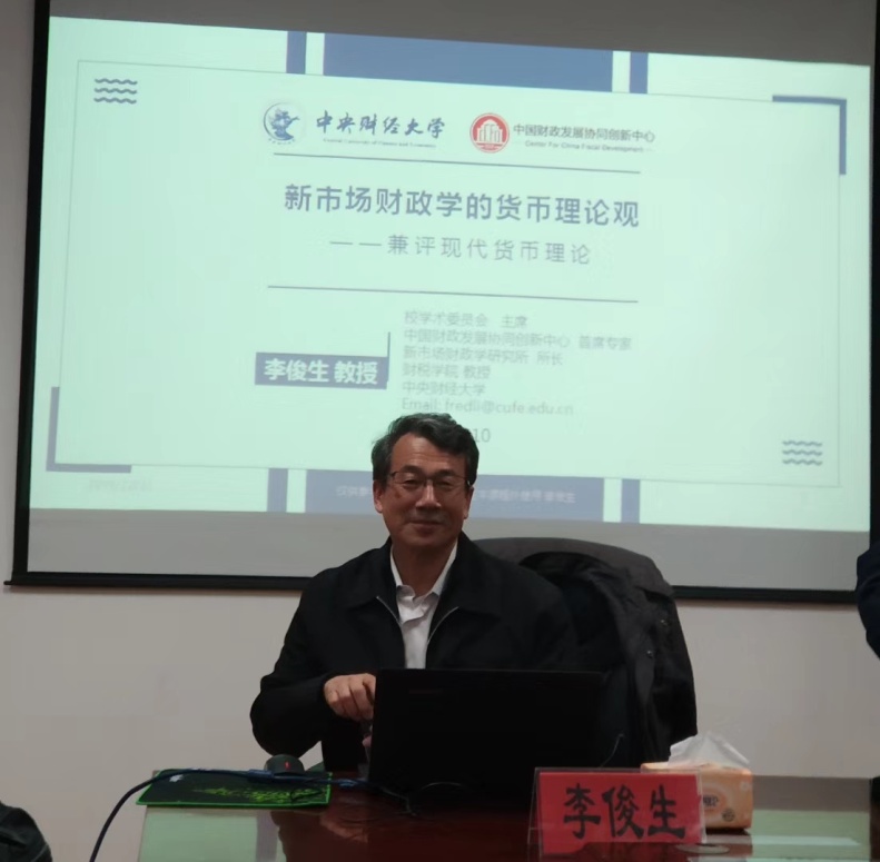 2019年12月23日下午,中央财经大学学术委员会主席李俊生教授应邀到星空体育官网开展学术交流与指导,并作客星空体育官方网站2019年第28期“经济学名家讲堂”,为师生做了《新市场财政学的货币理论观-兼评现代货币理论》的精彩学术报告。星空体育官方网站部分教师、研究生以及相关学院教师参加了此次交流活动。