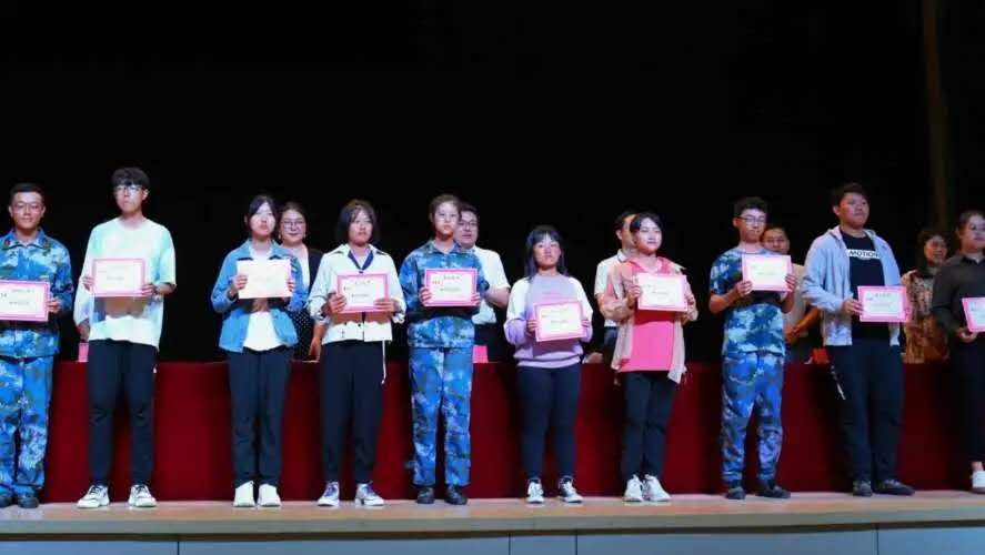 任龙老师上台宣读军训期间所获荣誉名单并主持颁奖仪式。现场掌声连连,气氛高涨。在全场师生齐唱《歌唱祖国》的歌声中,典礼圆满落幕。