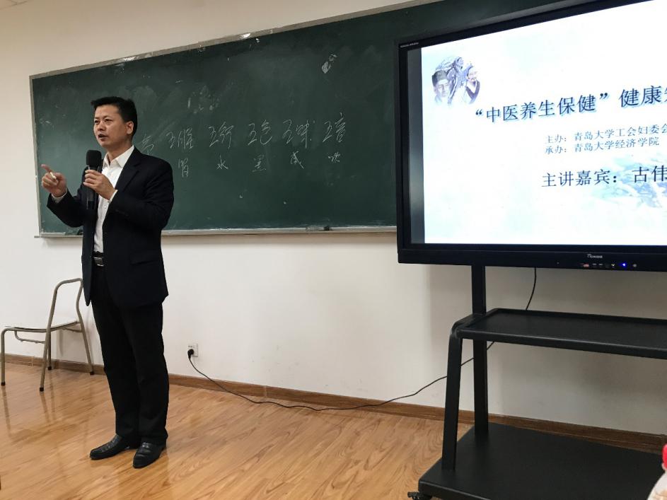 为提高教职工的保健养生意识,关爱大家的健康水平,11月19日下午,由星空体育官方网站工会妇委会主办、星空体育官方网站承办,星空体育官方网站“中医养生保健”健康知识讲座于金家岭三号实验楼411会议室成功举办。本次讲座特邀青岛古易堂中医专家古伟担任主讲嘉宾,星空体育官方网站工会小组长许清清主持,星空体育官方网站工会副主席万萍莉和学校教职工代表共同聆听讲座。