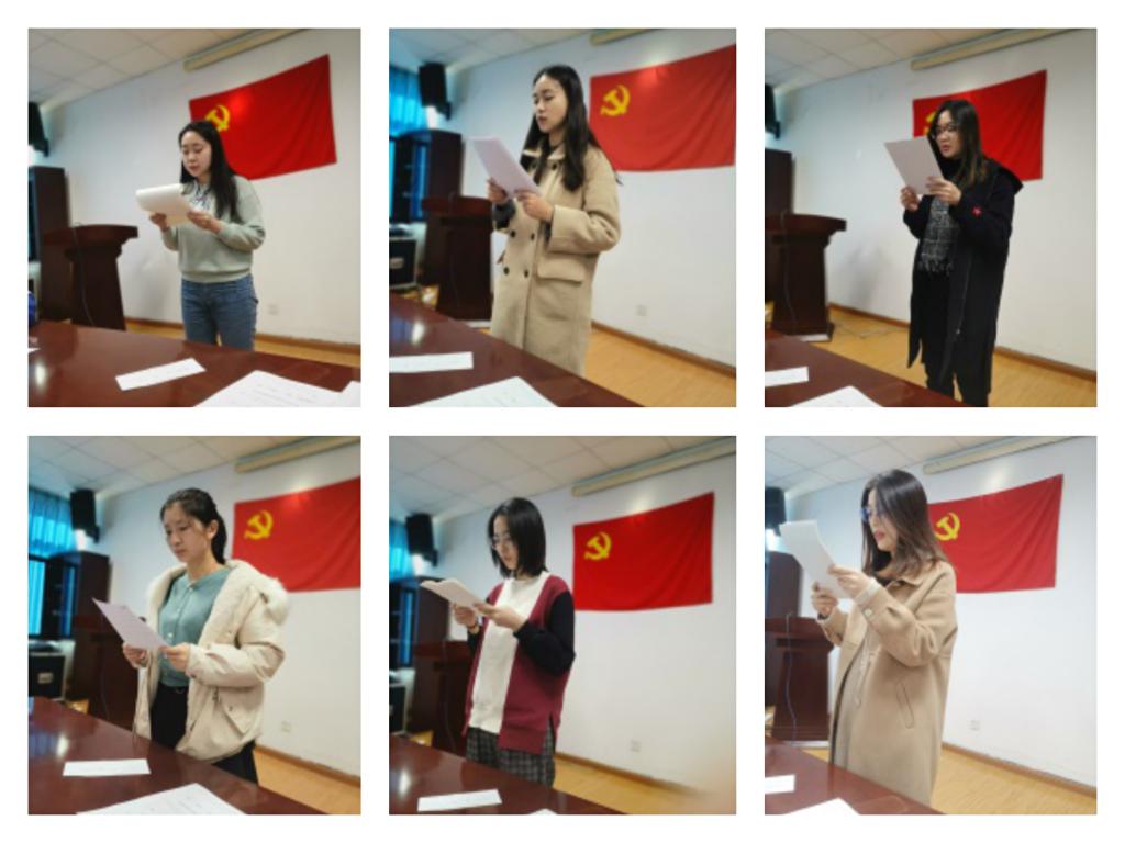 苏娇、王雅珺、李嘉菲等二十六名同志认真宣读转正申请书,汇报了预备期间的基本情况,从思想、工作、学习、生活等方面总结了自己预备期间的成长和进步,找出自己的差距和不足,表明自己的态度和决心。