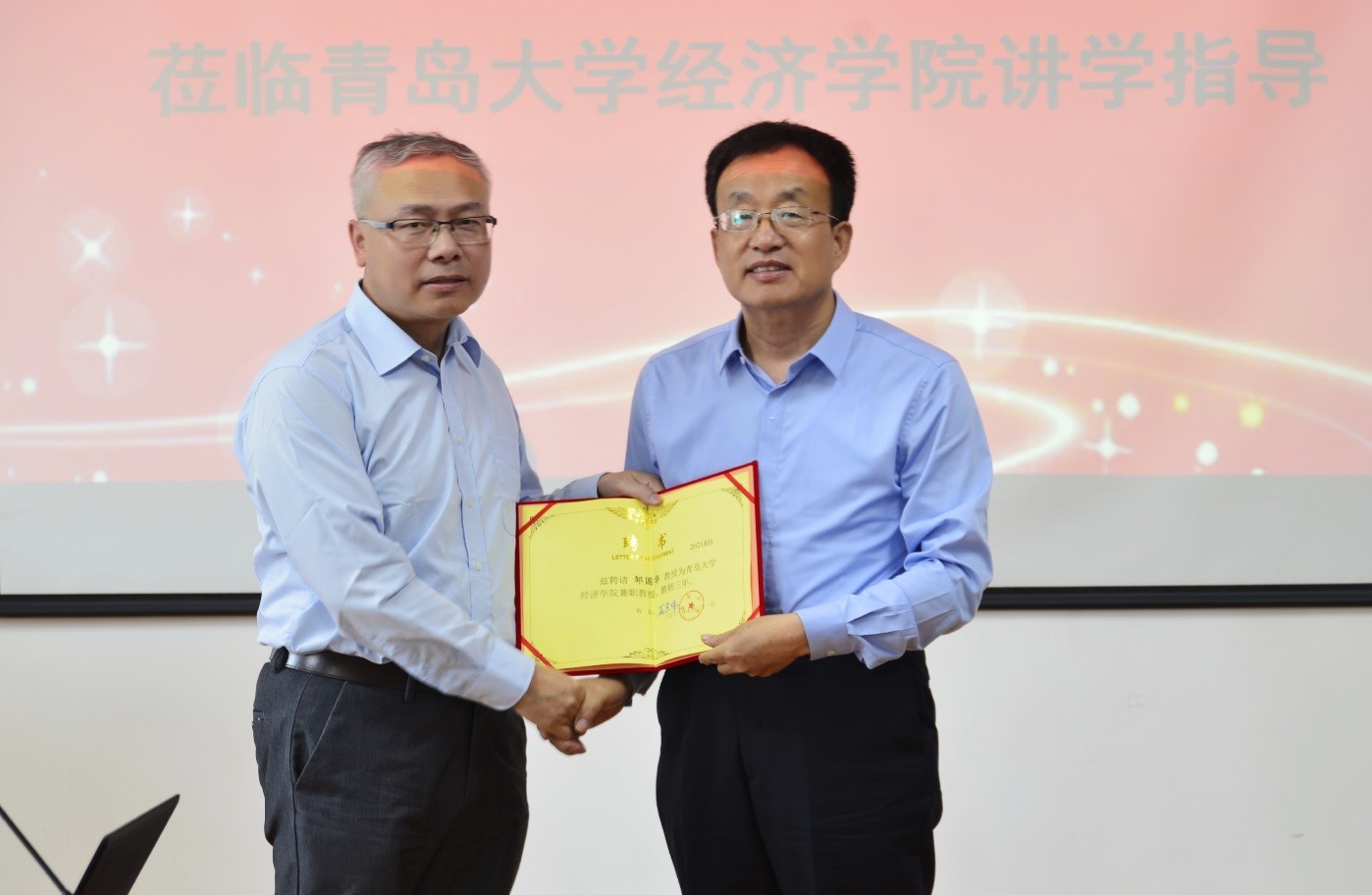 2021年5月31日下午,星空体育官方网站在金家岭校区举行了兼职教授聘任仪式,首都师范大学邹国华教授受聘为星空体育官方网站兼职教授,星空体育官方网站刘喜华院长为邹国华教授颁发了聘书。聘任仪式结束后,邹教授做客星空体育官方网站“经济学名家讲堂”,为全院师生做了《Model averaging estimation for probability density functions》的精彩学术报告,讲座由陈东景副院长主持。