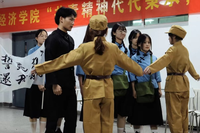 表演从彩排到现场展示历时一个多月,一幕幕跨越时空、直击心灵的舞台剧在同学们的精心演绎下,真实地还原了那些峥嵘岁月。通过融入了歌唱、舞蹈、朗诵、表演的舞台剧呈现形式,同学们更加直观形象地了解了中国共产主义青年团的历史,并在无形中感受到红色历史的魅力,体会到信仰的力量,为大学生抒发热爱祖国的美好情感提供了平台,展现了经院学子朝气蓬勃的精神面貌。2021级田俊彦同学在《百年对话》中饰李大钊,他在表演后提到:“通过对于李大钊先生一角的扮演,加深了我对于先生伟岸形象的理解,看到了百年前的仁人志士为了国家和人民的事业勇于献身的忠诚和坦荡,更是感受到了一份沉甸甸的责任和神圣使命的召唤。”