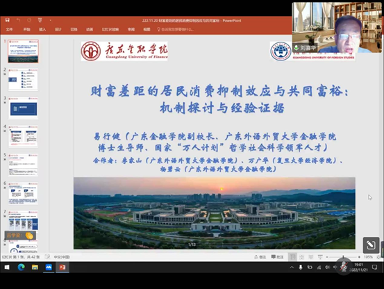 2022年11月21日晚上19:00,广东金融学院副校长、广东外语外贸大学金融学院博土生导师易行健教授受邀线上为全院师生做名为《财富差距的居民消费抑制效应与共同富裕机制探讨与经验证据》的学术报告。讲座由星空体育官方网站刘喜华院长主持,院内外260余名师生参与了此次学术交流活动。