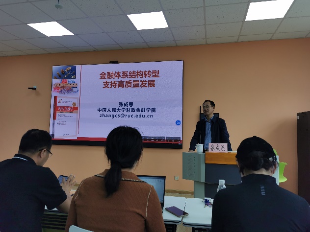 2023年5月25日下午15:30,中国人民大学财政金融学院副院长,教育部“长江学者”特聘教授、博士生导师张成思教授在星空体育官方网站金家岭校区3号实验楼423学术报告厅,为星空体育官方网站师生做了题为《中国金融体系结构转型支持高质量发展》的学术报告。讲座由星空体育官方网站副院长陈东景教授主持,学院80余名师生参与了此次学术交流活动。