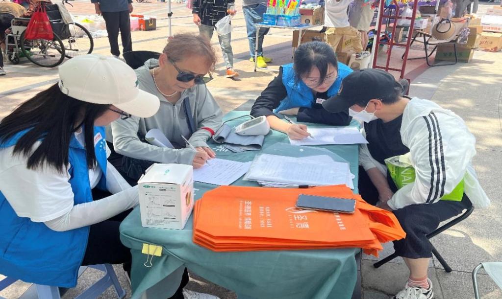 “心希望”志愿服务团队与圣德医养康复集团的医护人员共同为老年居民带来免费社区义诊和老年认知症专项筛查服务。该项调查采用国家权威机构研发的脑健康测评系统,通过评估老年人的认知能力、辨别能力、情景记忆等能力,依据问卷结果,利用信息化智能化的手段,评估其脑健康情况,生成认知症初筛报告。在志愿活动的现场,团队还为老年居民进行免费的血压检测,并且准备了口罩、湿巾等小礼物送给老人。