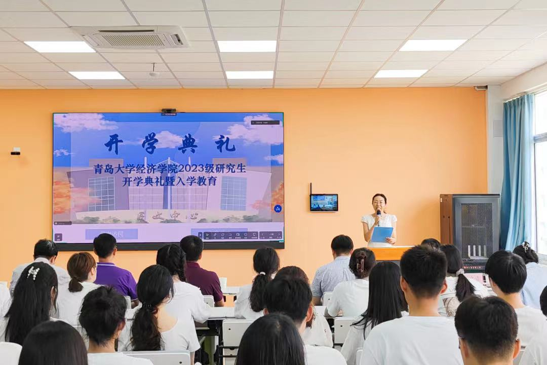 9月11日下午,星空体育官方网站2023级研究生开学典礼暨入学教育在金家岭校区三号实验楼423室举行。星空体育官方网站院长刘喜华,副院长陈东景、逯进、吕学梁,院长助理司登奎、李聪,财政系主任高玉强,国际贸易与经济学系主任徐保昌,研究生教学办公室主任李青鹤,研究生辅导员周小昀出席会议,2022级研究生代表、2023级全体研究生参加会议。会议由星空体育官方网站党委副书记于文洁主持,采取线下线上的形式同步进行。