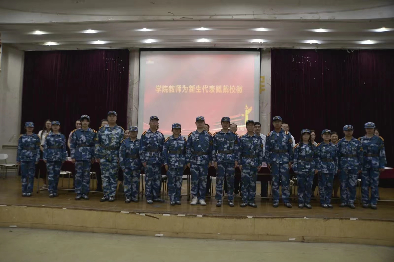 在领导、老师们的见证下,学院教师为新生代表佩戴校徽。新生将校徽佩戴在胸前那一刻起将与青大血脉相连。新青大人,将承载着青大经院的期望与重托,在前行道路上发扬“经世济民”的经院学子风采。