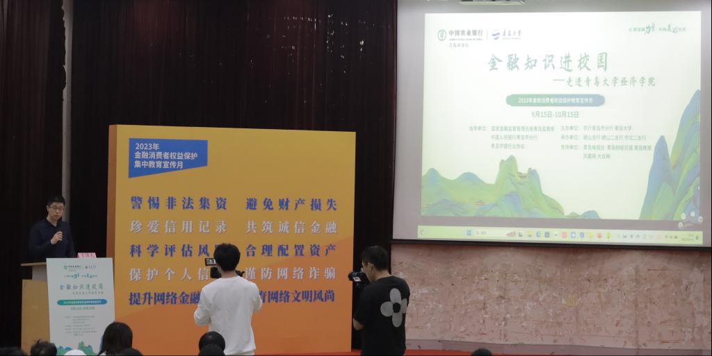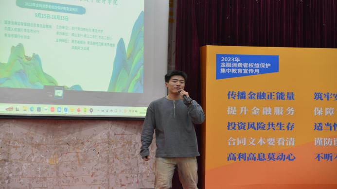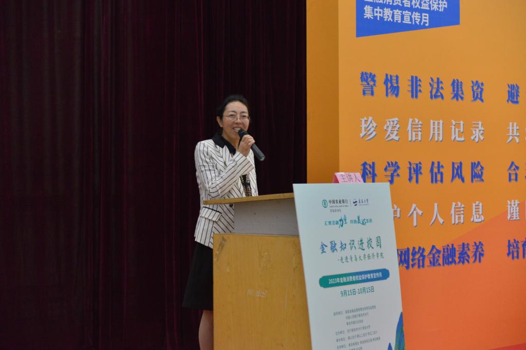 在致辞中黄鑫表示,9月15日—10月15日以“汇聚金融力量 共创美好生活”为主题的2023年“金融消费者权益保护教育宣传月”在全国开展。中国农业银行青岛市分行携手星空体育官方网站广大师生,将金融知识融入教育场景,坚持以人民为中心的发展思想,密切开展银行和学校的合作。希望通过本次宣讲,防范非法金融活动,保护好大家的钱袋子。