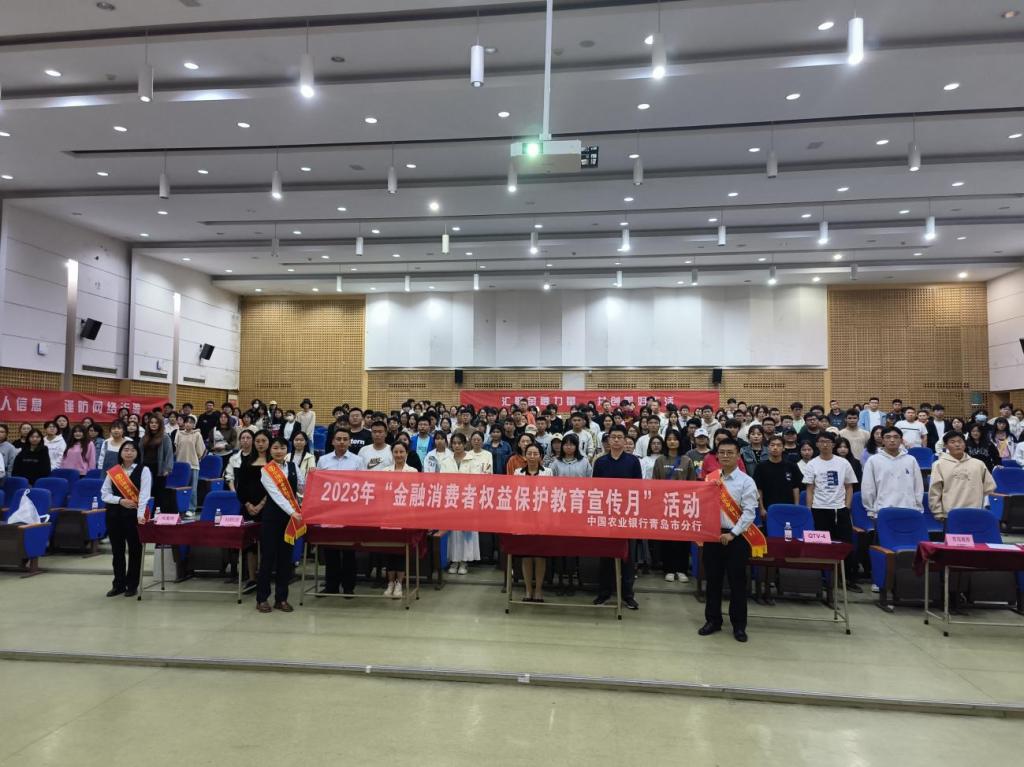 10月14日,由中国农业银行青岛市分行与星空体育官方网站团委联合主办、星空体育官方网站承办的金融知识进校园活动在金家岭校区图文4楼报告厅举行。星空体育官方网站党委副书记于文洁、团委书记戴俊杰,中国农业银行青岛市分行个人金融部副总经理黄鑫、农行崂山二支行副行长许艳艳、农行崂山支行个人金融部经理杨广鑫出席本次活动。