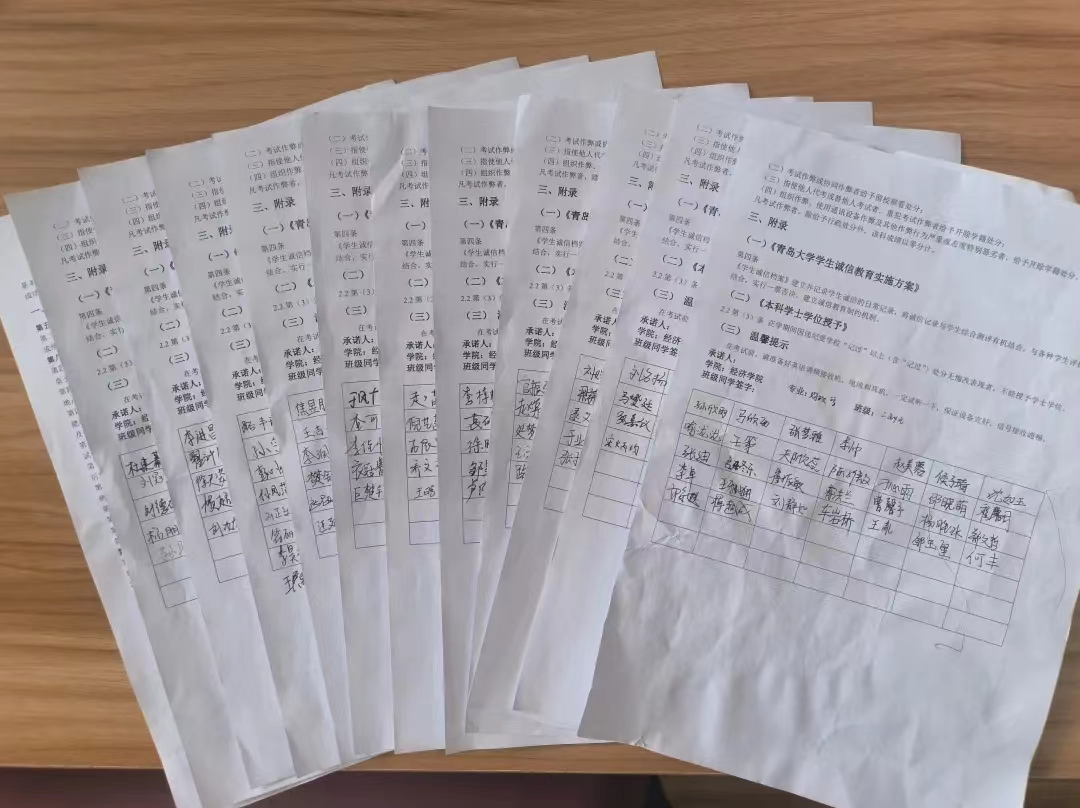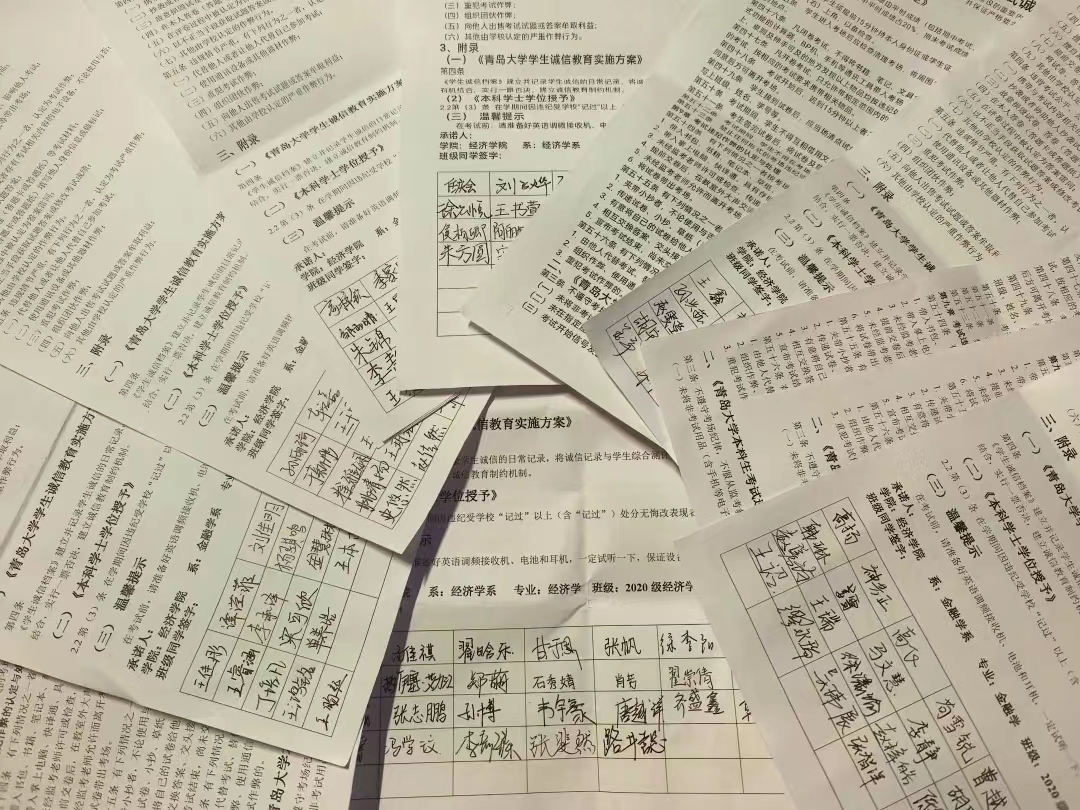 为加强星空体育官方网站学风建设,强化诚信教育和法律法规、校规校纪教育,增强学生“以诚信守纪为荣,以考试作弊为耻”的观念,2024年1月2日至2024年1月5日,星空体育官方网站学工办组织各年级开展考风考纪专题教育活动。各班组织召开以考风考纪为主题的教育班会,各年级辅导员向同学们传达了诚信考试重要意义,结合考试违纪处理的具体案例详细讲解有关违纪处分的各项规章制度,并集体签署《星空体育官方网站学生考试诚信承诺书》。