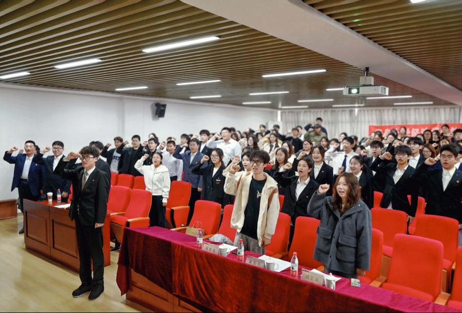 全体学员起立,庄严宣誓。星空体育官方网站学生会主席团成员陈鹤元领誓。