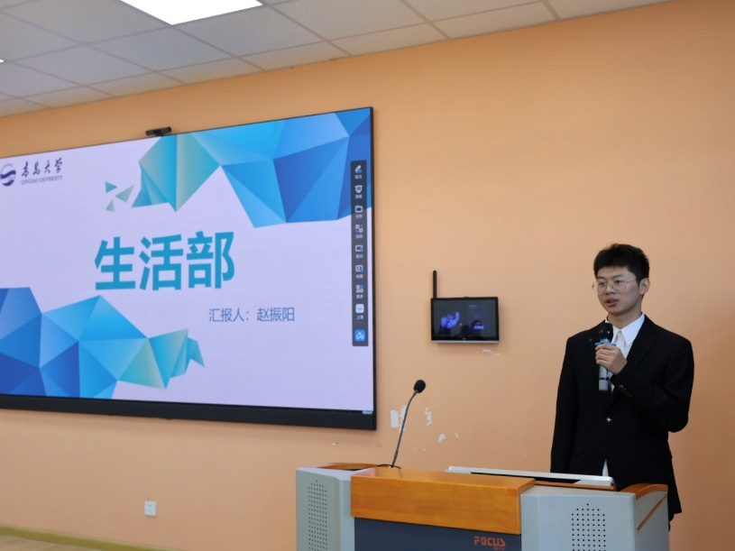 生活部部长赵振阳针对学生生活需求、权益保障等方面,提出了新一届部门工作重点与服务举措。
