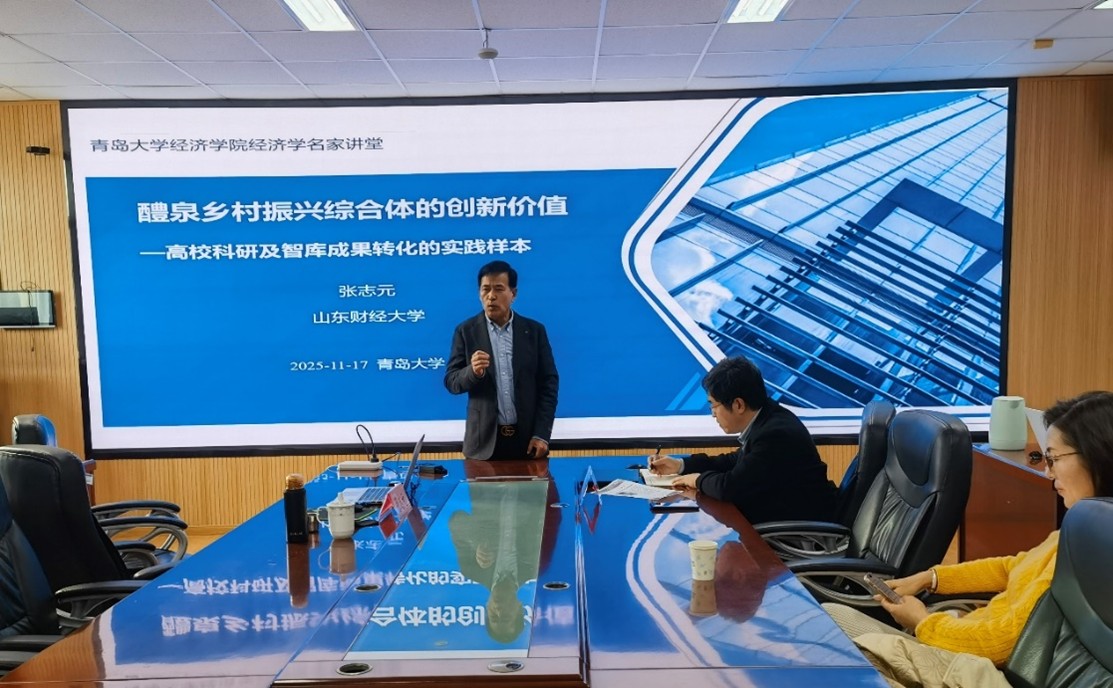 2025年11月17日下午,星空体育官方网站“名家讲堂”在金家岭校区西院3号实验楼307会议室举行。讲座由星空体育官方网站院长吕学梁主持,由山东财经大学资深教授、博士生导师张志元以“醴泉乡村振兴综合体的创新价值——高校科研及智库成果转化的实践样本”为题,给大家带来了一场兼具理论深度与实践温度的学术讲座。