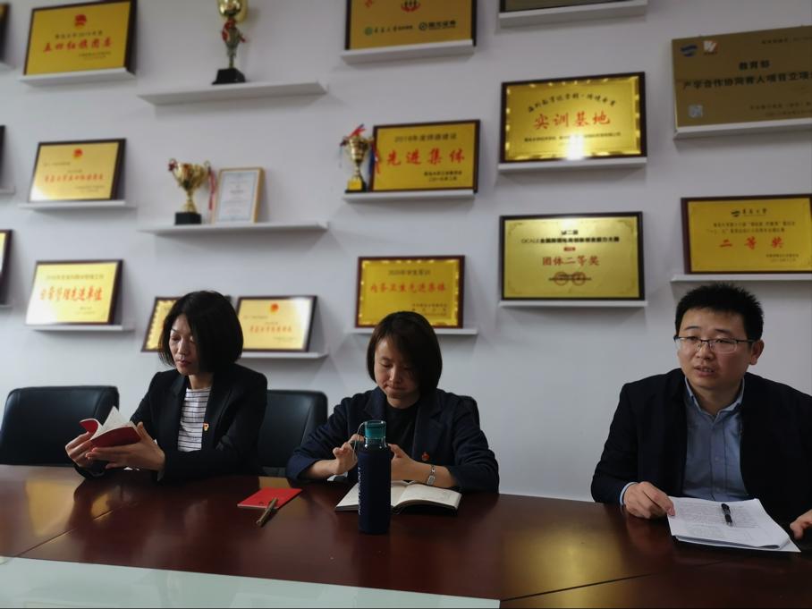 教师党员代表宋艳丽、周雪、纪尚安、任龙、曲艳雁围绕国贸专业积极发言,深入交流,首先提出深挖专业特色,让专业与思政相互结合,德育与智育相互统一;其次在教学中让学生了解国际和国内经济动态,掌握国际贸易发展方向和当下经济热点,呼吁学生党员发挥先锋作用,在课堂思政建设过程中发挥主动性、创造性,做好老师的助手;最后加强对学生特点的研究,灵活运用当下多媒体工具,加强思想价值引领,助力学生健康成长成才。