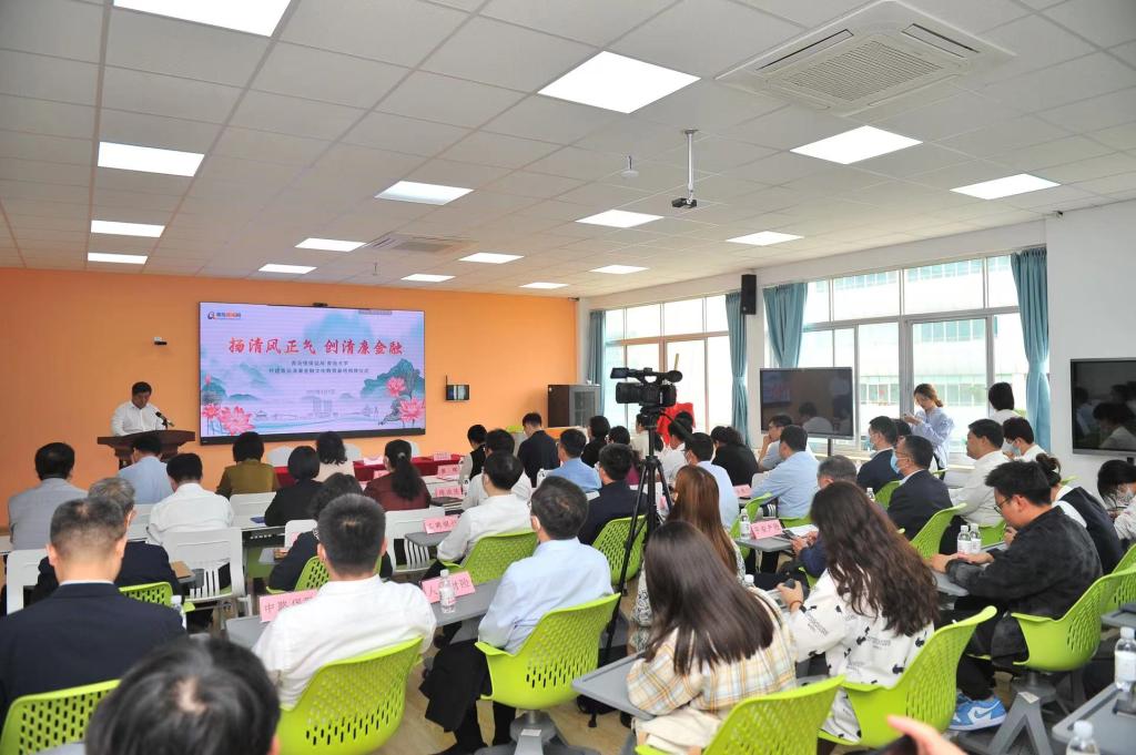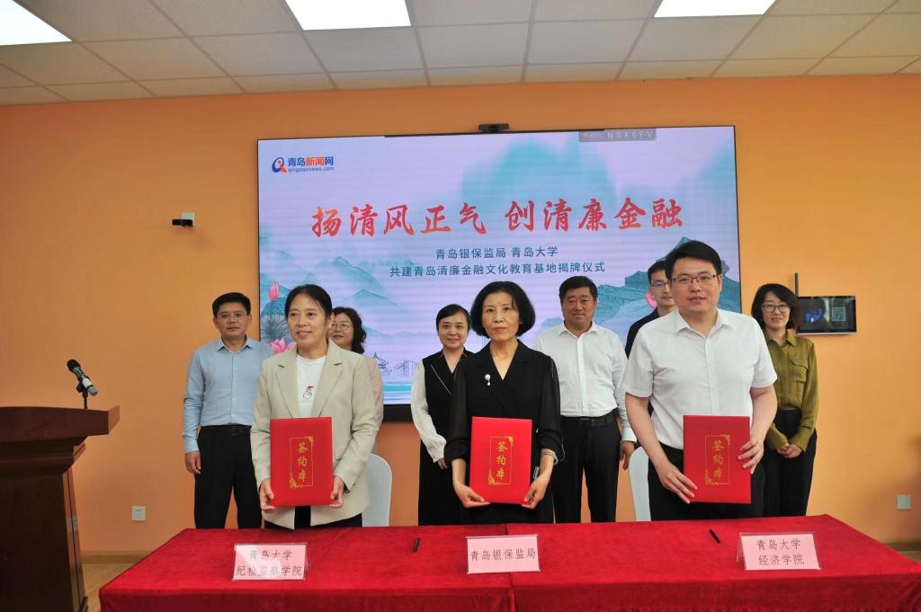 6月1日上午,星空体育官方网站党委、政治与公共管理学院党委和银保监局纪委在金家岭校区联合开展“清廉金融文化进校园”主题教育共建活动,青岛银保监局党委委员、纪委书记廖晖,星空体育官方网站党委常委、宣传部部长吴世珍,青岛市纪委监委有关领导,青岛市银行业协会、青岛市保险行业协会专职副会长,15家银行保险机构纪委书记或分管纪检工作的行(司)领导,相关学院负责同志共同出席活动。活动现场,星空体育官方网站、政治与公共管理学院与青岛银保监局纪委签署了《青岛清廉金融文化教育战略合作备忘录》,廖晖与吴世珍共同为“青岛清廉金融文化教育基地”揭牌,15家机构在校园内进行了清廉金融文化宣传路演。下一步,合作各方将充分发挥各自在政策、资源、组织等方面优势,建立战略合作关系,共建“青岛清廉金融文化教育基地”;探索双向开展青岛清廉金融文化教学实践及从业培训,研究谋划将清廉金融文化相关内容纳入星空体育官方网站学生选修课程,促进清廉思想在金融行业、在星空体育官方网站校园蔚然成风;联合开展青岛清廉金融文化建设系列课题研究,合作编制《清廉金融文化读本》,服务青岛清廉金融文化高质量建设,合力打造具有青岛特色的清廉金融品牌。