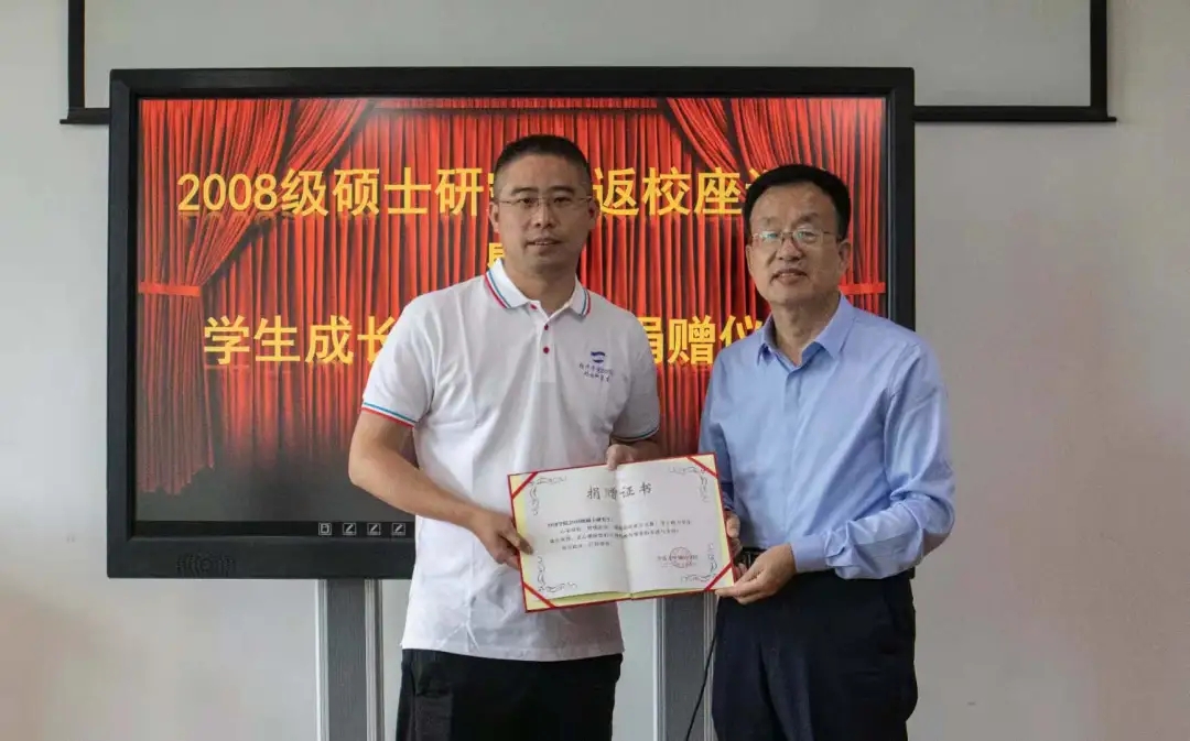 2008级校友依次做自我介绍并浅谈毕业后十年自己的发展及再次回到母校的感受。“当时都是平常事,现在思量倍有情”,感谢老师的栽培,也感谢青大给了自己更高的平台、起点。陈锋、孙继国、李冉相继发言,对学生如今事业的成功表示祝贺。随后,王海荣副书记讲话,她首先对大家从各地奔赴而来、齐聚青大表示感动与感谢,然后介绍了学生成长发展基金的有关情况和校友会方面的事宜,鼓励各位校友多为学弟学妹们提供机会、传授经验,欢迎常回学校参加活动。刘喜华院长对学院现在的发展变化做了简要介绍,他谈到近几年学院发展变化巨大,学科方面做了全新调整,师资力量整体有所提高,学术方面取得了重大进展。郭长坤作为校友代表向学院捐款,刘院长为其颁发了捐赠证书,以感谢他们对母校的无私捐赠。