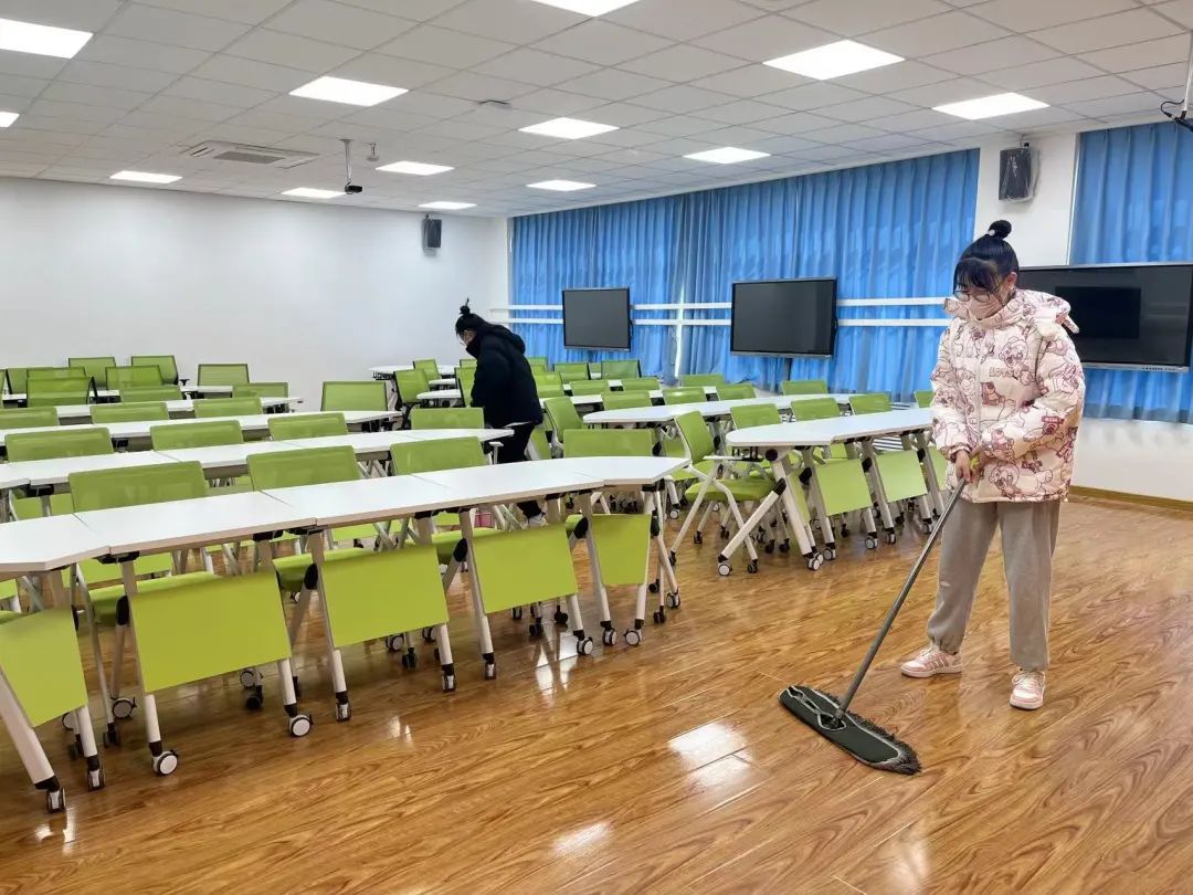 为引导学生在强身健体中积极投身校园环境维护,培养良好的生活习惯和文明共荣的意识,努力营造“人人争当校园守护者”的良好氛围。星空体育官方网站开展“美丽青大你我共建”志愿服务活动——我为学校办件事,围绕“文明教室”主题开展劳动教育活动。