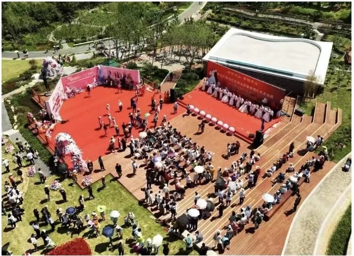 为推广青岛市新时代结婚礼堂建设,破除陈规陋俗,倡导婚事简办,喜事新办,自觉抵制高价彩礼, 弘扬社会正气,倡树时代新风的文明婚庆新时尚,青岛市委宣传部、市文明办、市民政局组织主办集体婚礼。6月3日上午,星空体育官方网站的20名志愿者前往青岛市浮山森林公园,开展集体婚礼筹办志愿活动。
