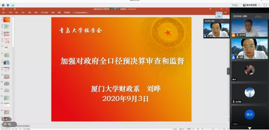 9月3日晚,厦门大学财政系副主任刘晔教授,在线上为星空体育官方网站师生近200人,做了题为“加强对政府全口径预算审查和监督”的高端讲座。